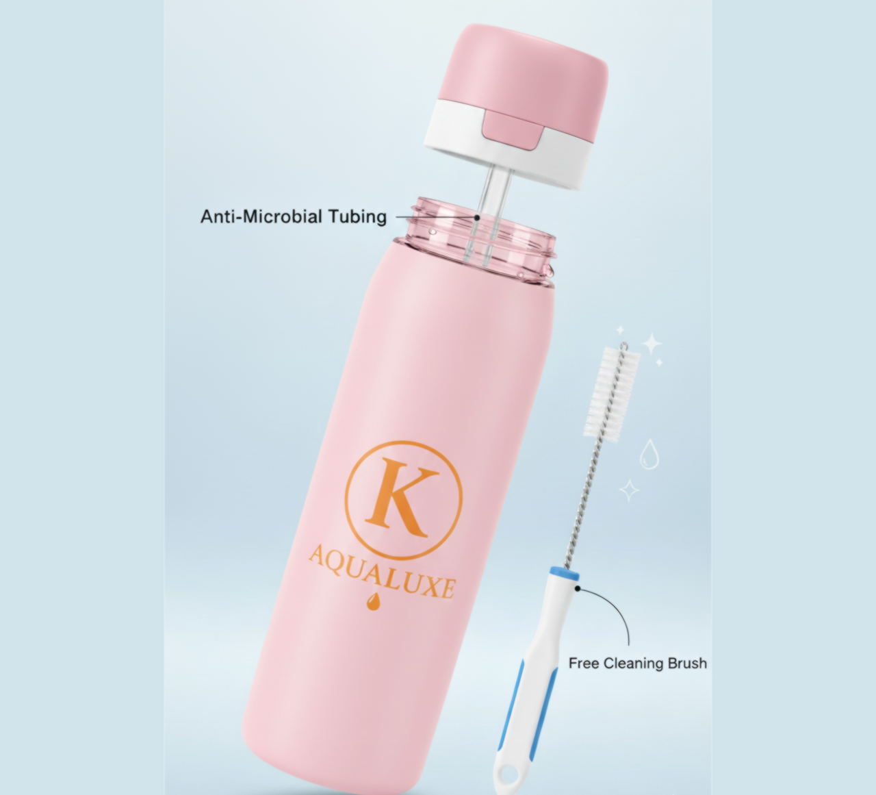 This bottle uses anti-microbial tubing and comes with a free cleaning brush for peace of mind.